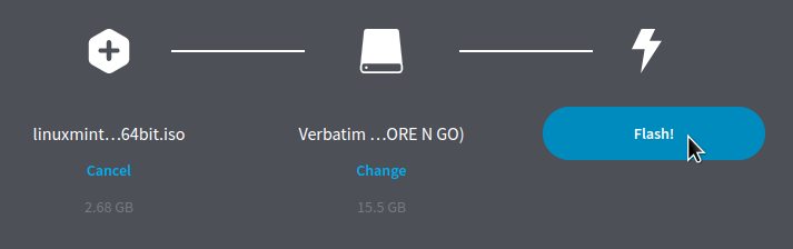 Enfin, si tout est en ordre pour être écrit sur la clé USB, nous pouvons cliquer sur Flash! afin de lancer l'écriture de l'image ISO sur la clé USB.