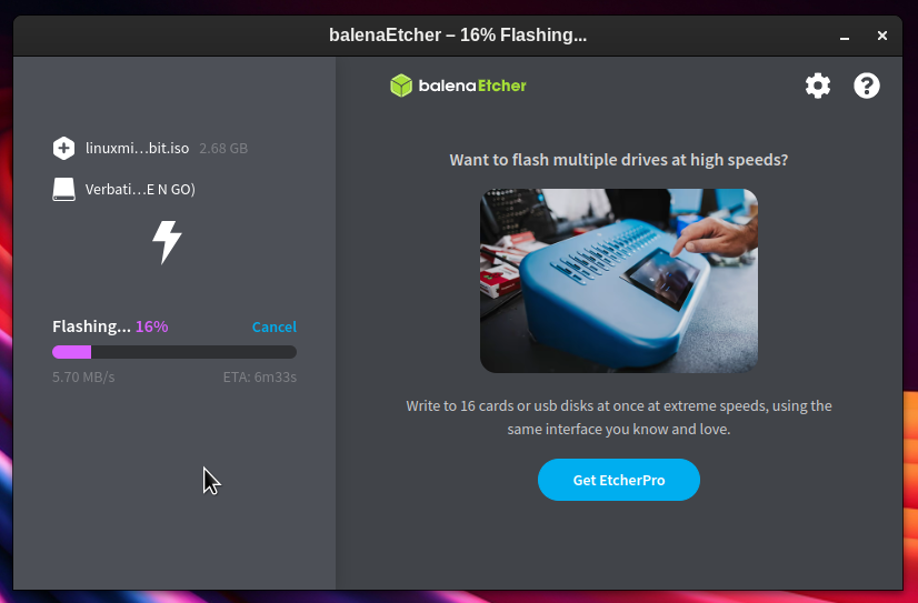 - Un logiciel de copie d'image disque, tel que Etcher (conseillé aux débutants), Rufus, ou encore Ventoy (cas un peu spécial, voir la section dédiée)