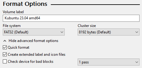 Enfin, on peut régler les derniers paramètres dans la section Format Options, il est généralement conseillé de laisser les valeurs par défaut.