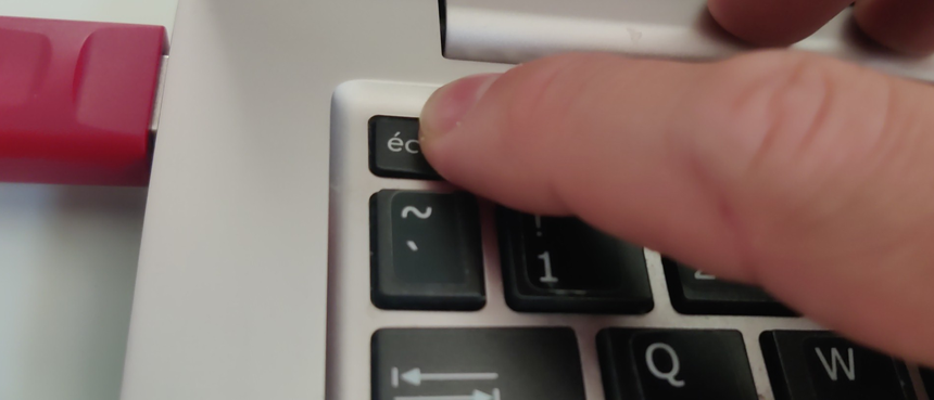 Attention c'est une opération à réaliser durant les premières secondes du démarrage de l'ordinateur, et il est facile de rater la fenêtre d'opportunité pour appuyer. La touche à utiliser change en fonction du type de machine et sa marque.